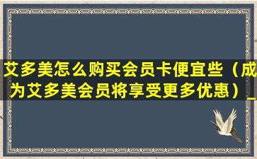 艾多美怎么购买会员卡便宜些(成为艾多美会员将享受更多优惠)