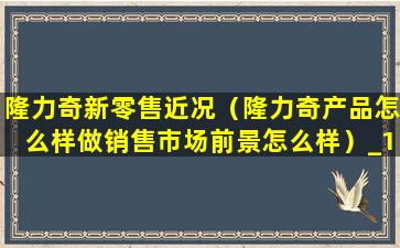 隆力奇新零售近况(隆力奇产品怎么样做销售市场前景怎么样)