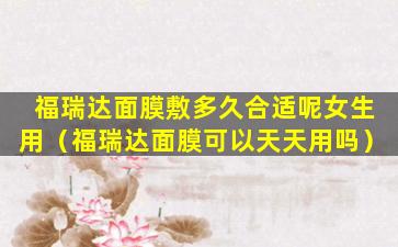 1、福瑞达面膜敷多久合适呢女生用