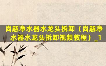 尚赫净水器水龙头拆卸(尚赫净水器水龙头拆卸视频教程)