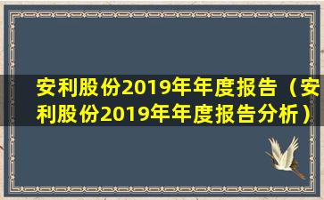 安利股份2019年年度报告(安利股份2019年年度报告分析)