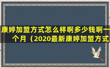 1、康婷加盟方式怎么样啊多少钱啊一个月