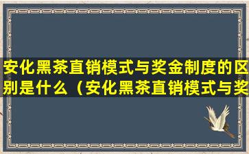 安化黑茶直销模式与奖金制度的区别是什么(安化黑茶直销模式与奖金制度的区别是什么呢)