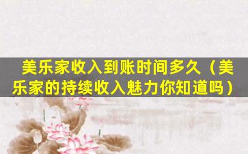 美乐家收入到账时间多久(美乐家的持续收入魅力你知道吗)