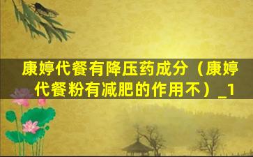 康婷代餐有降压药成分(康婷代餐粉有减肥的作用不)