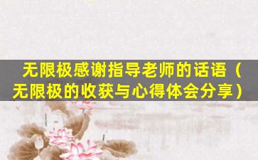 无限极感谢指导老师的话语(无限极的收获与心得体会分享)