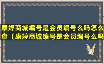 康婷商城编号是会员编号么吗怎么查(康婷商城编号是会员编号么吗怎么查看)