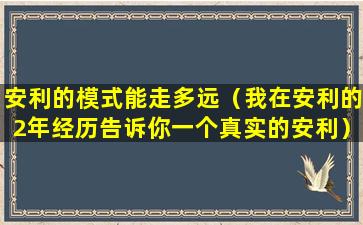 安利的模式能走多远(我在安利的2年经历告诉你一个真实的安利)