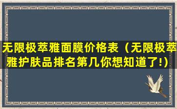 无限极萃雅面膜价格表(无限极萃雅护肤品排名第几你想知道了!)