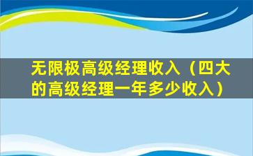 无限极高级经理收入(四大的高级经理一年多少收入)