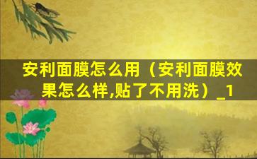安利面膜怎么用(安利面膜效果怎么样,贴了不用洗)
