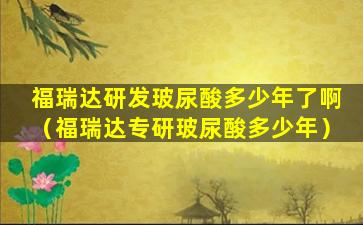 福瑞达研发玻尿酸多少年了啊(福瑞达专研玻尿酸多少年)