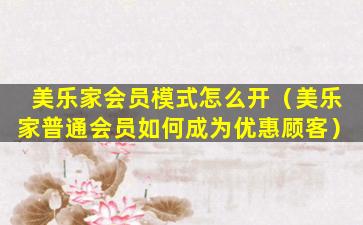 美乐家会员模式怎么开(美乐家普通会员如何成为优惠顾客)