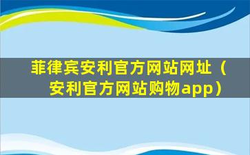菲律宾安利官方网站网址(安利官方网站购物app)