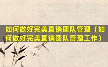 如何做好完美直销团队管理(如何做好完美直销团队管理工作)