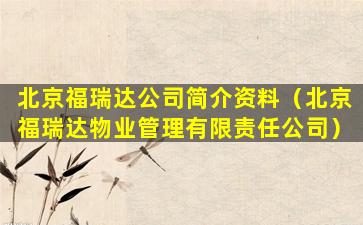北京福瑞达公司简介资料(北京福瑞达物业管理有限责任公司)
