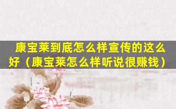 康宝莱到底怎么样宣传的这么好(康宝莱怎么样听说很赚钱)
