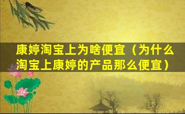 康婷淘宝上为啥便宜(为什么淘宝上康婷的产品那么便宜)