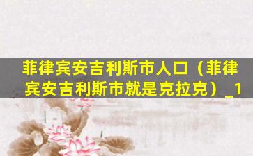 菲律宾安吉利斯市人口(菲律宾安吉利斯市就是克拉克)