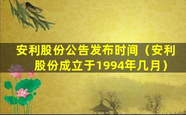 安利股份公告发布时间(安利股份成立于1994年几月)