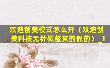 双迪创美模式怎么开(双迪创美科技无针微整真的假的)