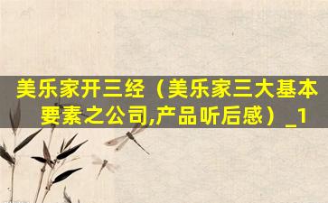 美乐家开三经(美乐家三大基本要素之公司,产品听后感)
