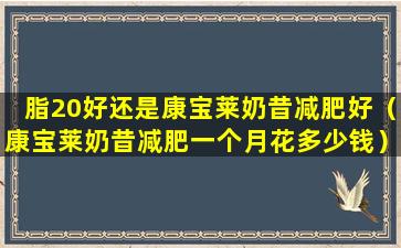 脂20好还是康宝莱奶昔减肥好(康宝莱奶昔减肥一个月花多少钱)