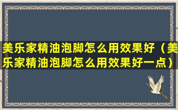 美乐家精油泡脚怎么用效果好(美乐家精油泡脚怎么用效果好一点)