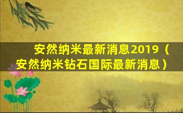安然纳米最新消息2019(安然纳米钻石国际最新消息)