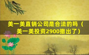 美一美直销公司是合法的吗(美一美投资2900撤出了)