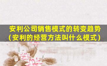 安利公司销售模式的转变趋势(安利的经营方法叫什么模式)