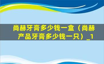 尚赫牙膏多少钱一盒(尚赫产品牙膏多少钱一只)