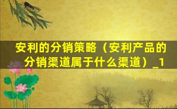 安利的分销策略(安利产品的分销渠道属于什么渠道)