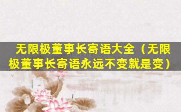 无限极董事长寄语大全(无限极董事长寄语永远不变就是变)
