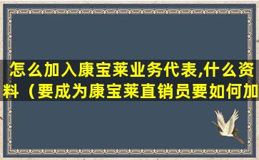 怎么加入康宝莱业务代表,什么资料(要成为康宝莱直销员要如何加入)