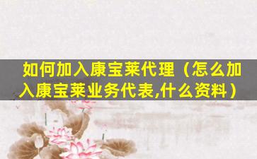 如何加入康宝莱代理(怎么加入康宝莱业务代表,什么资料)