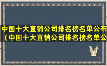 中国十大直销公司排名榜名单公布(中国十大直销公司排名榜名单公布图片)
