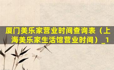 厦门美乐家营业时间查询表(上海美乐家生活馆营业时间)