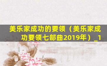 美乐家成功的要领(美乐家成功要领七部曲2019年)