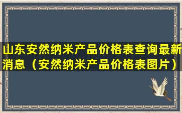 山东安然纳米产品价格表查询最新消息(安然纳米产品价格表图片)