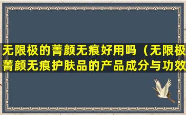 无限极的菁颜无痕好用吗(无限极菁颜无痕护肤品的产品成分与功效)