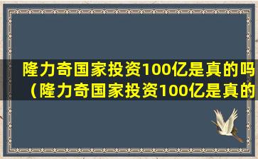 隆力奇国家投资100亿是真的吗(隆力奇国家投资100亿是真的吗还是假的)