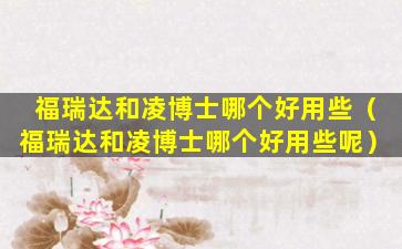 福瑞达和凌博士哪个好用些(福瑞达和凌博士哪个好用些呢)