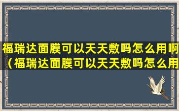 福瑞达面膜可以天天敷吗怎么用啊(福瑞达面膜可以天天敷吗怎么用啊图片)