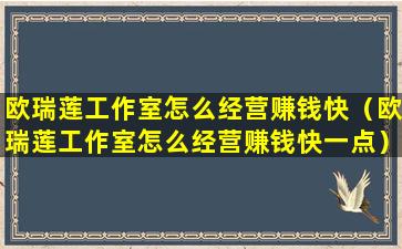 欧瑞莲工作室怎么经营赚钱快(欧瑞莲工作室怎么经营赚钱快一点)