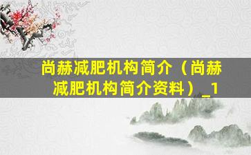 尚赫减肥机构简介(尚赫减肥机构简介资料)