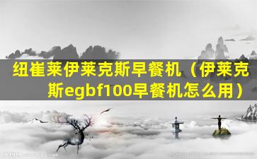 纽崔莱伊莱克斯早餐机(伊莱克斯egbf100早餐机怎么用)