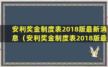安利奖金制度表2018版最新消息(安利奖金制度表2018版最新消息视频)