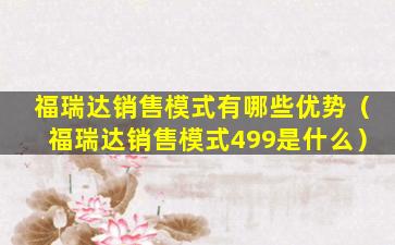 福瑞达销售模式有哪些优势(福瑞达销售模式499是什么)