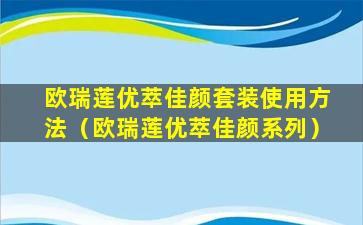欧瑞莲优萃佳颜套装使用方法(欧瑞莲优萃佳颜系列)
